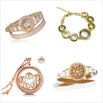 Liontin Floating Sandblasted Memory, Liontin Liontin Lapis Emas Mawar Terbuka dengan Liontin Kaca Bening